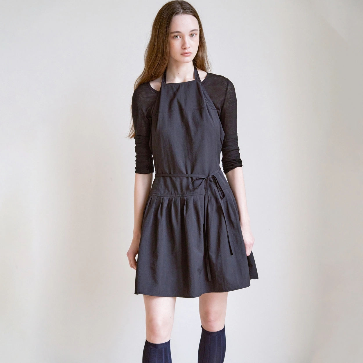 Moonlight Apron Layered Dress (Charcoal)