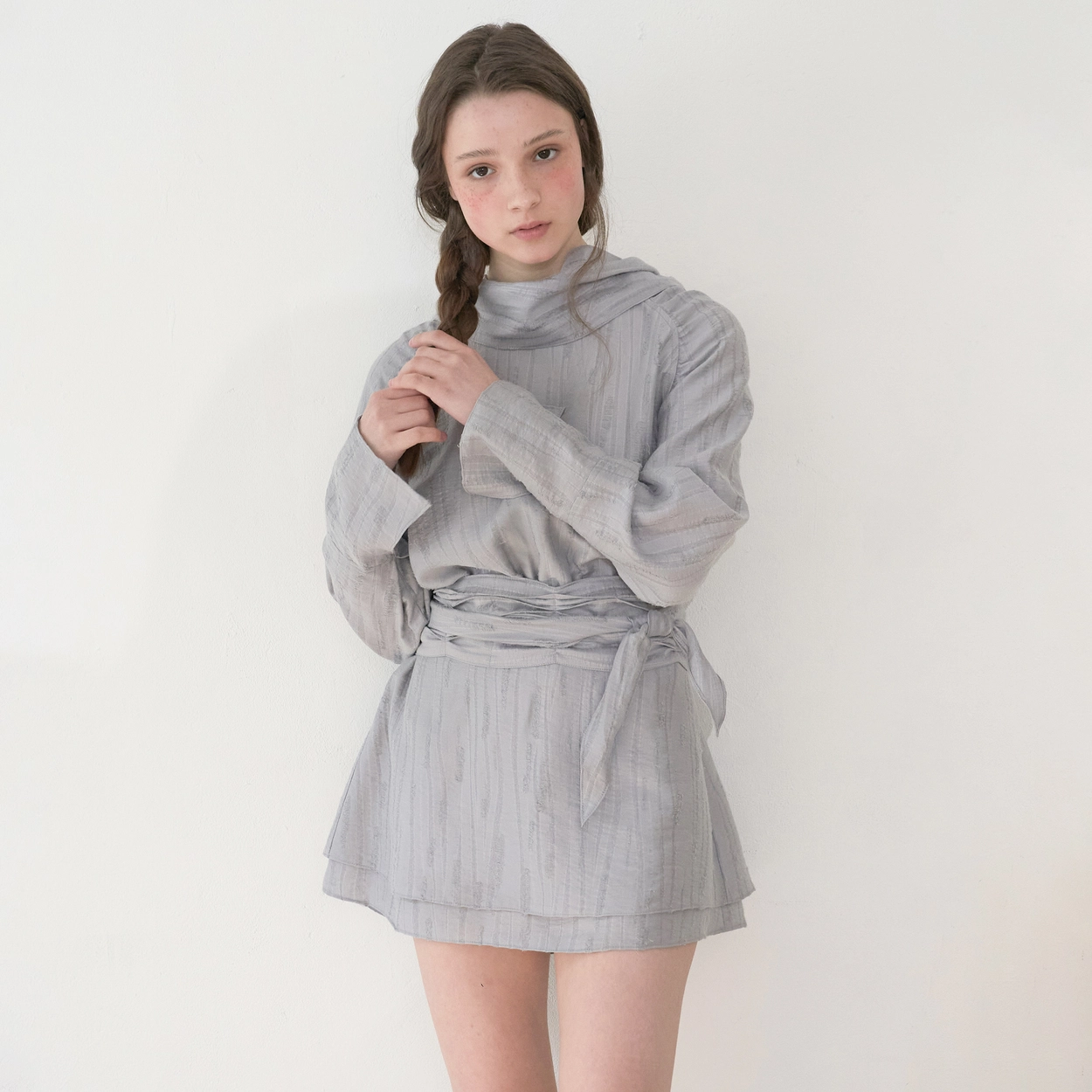 Leaf Scratch Tie Dress (Grey)