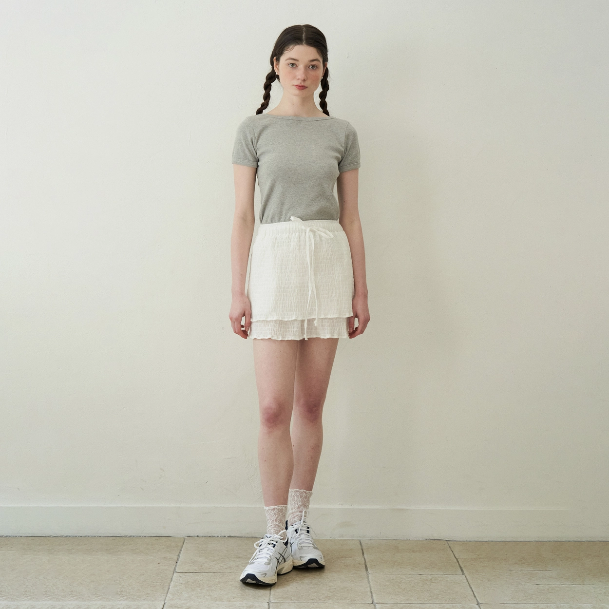 Julia Ribbon Pleats Skirt (White)