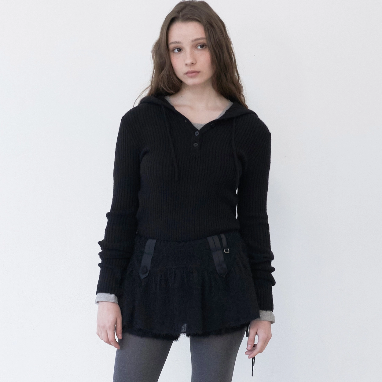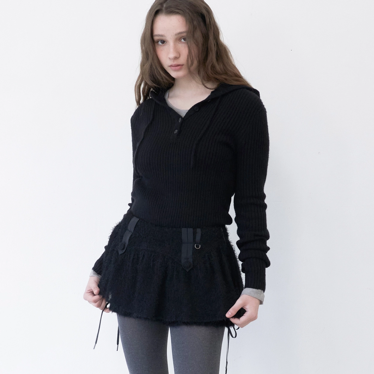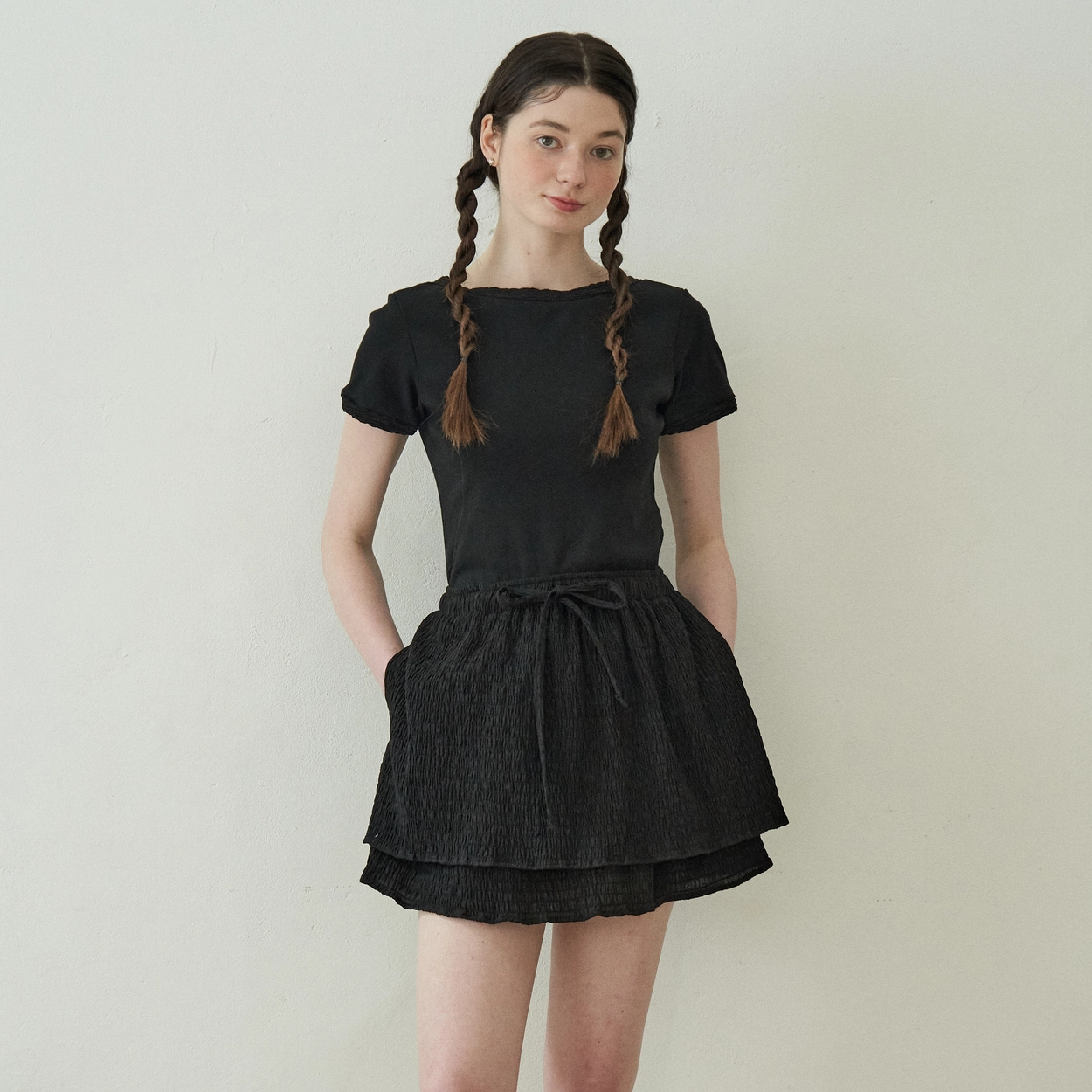 Crinkle Layered Ribbon Skirt (Black)