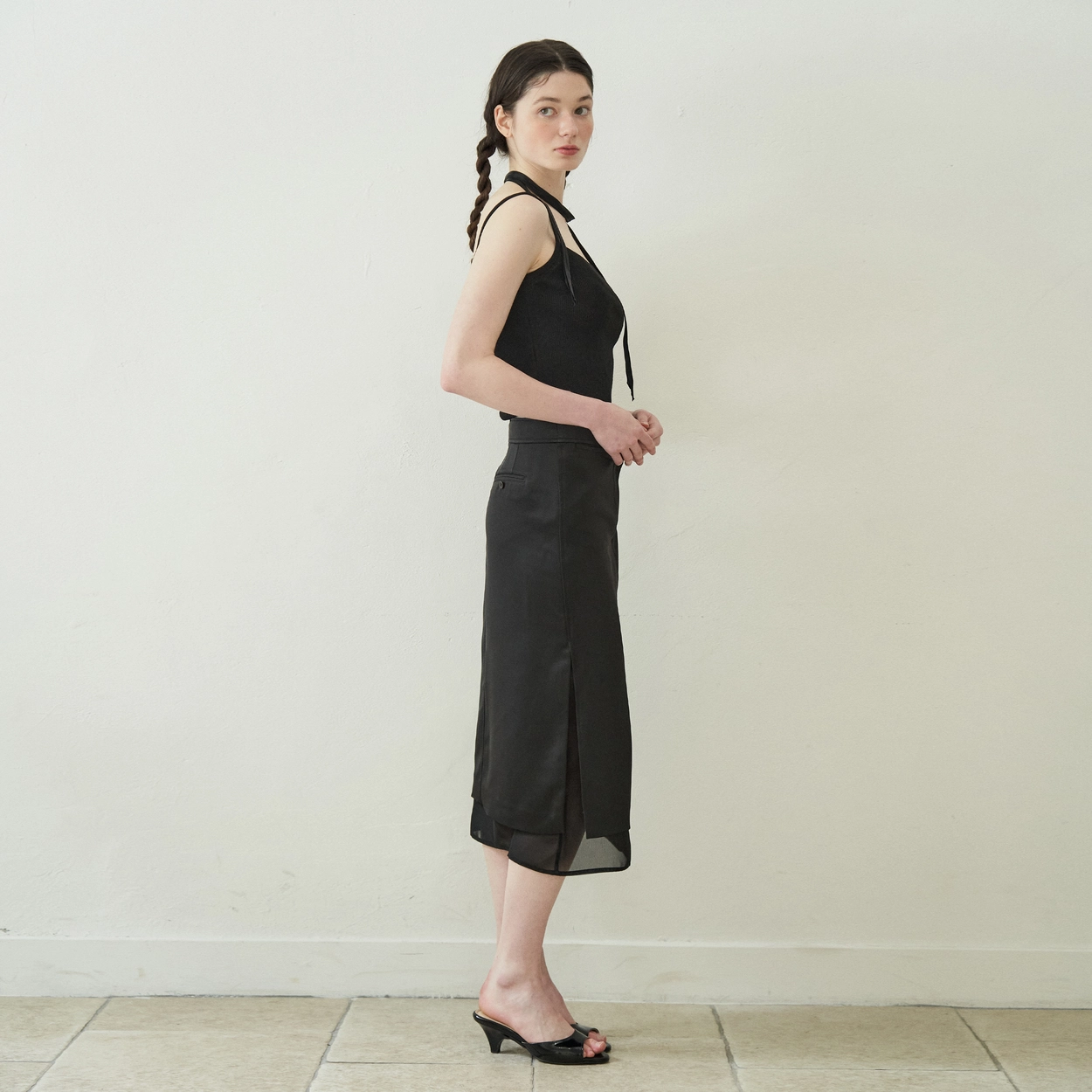 See-through Layered Satin Skirt (Black)