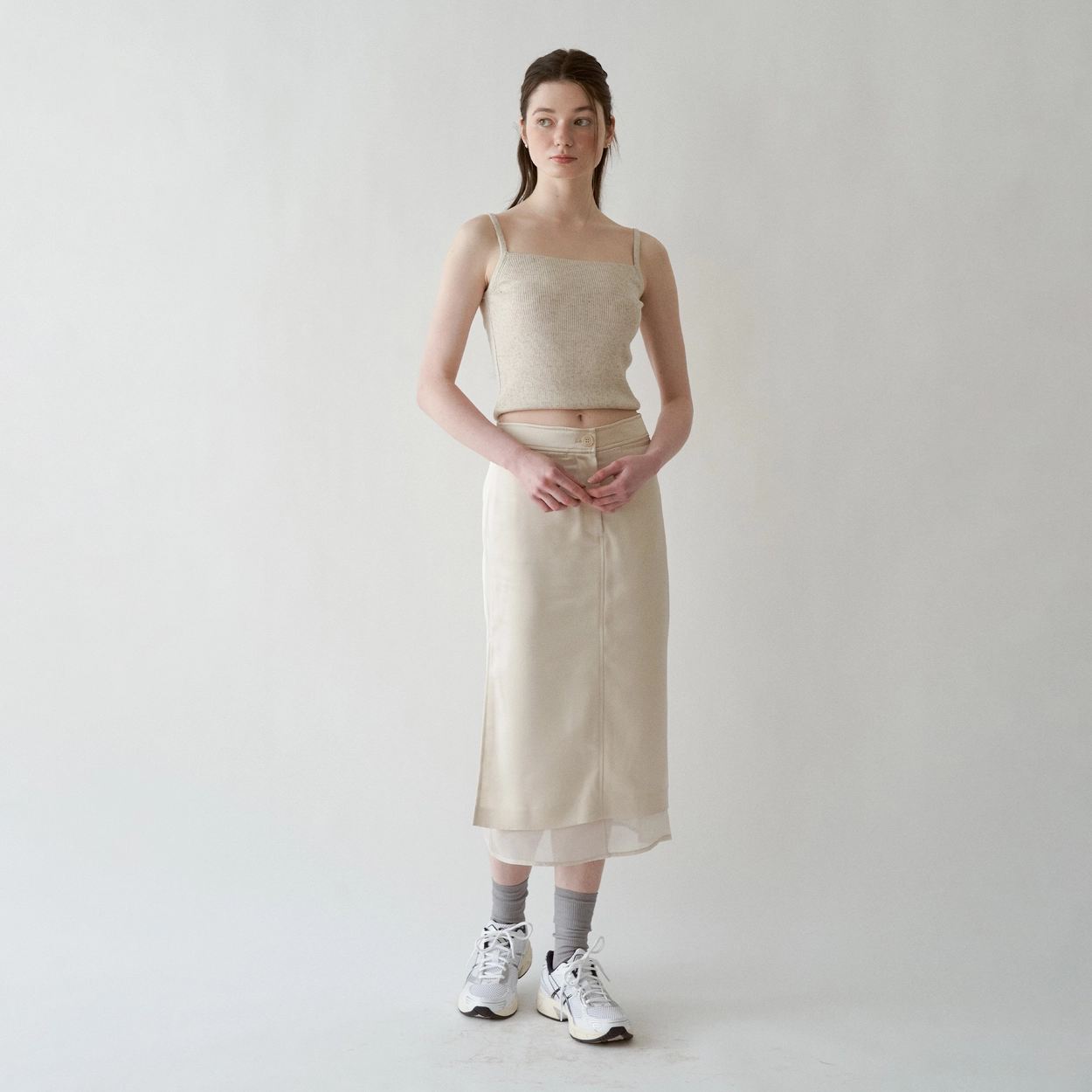 See-through Layered Satin Skirt (Beige)