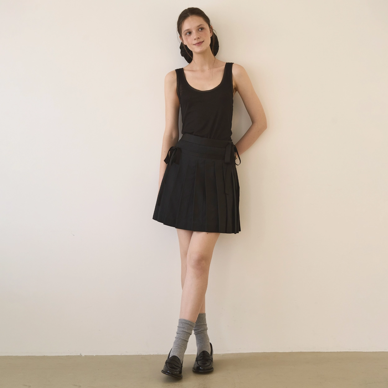 Julia Ribbon Pleats Skirt (Black)