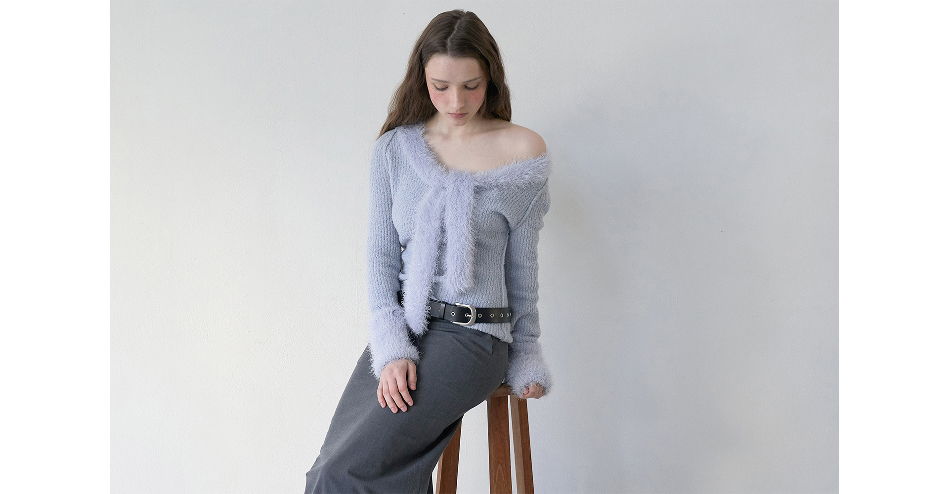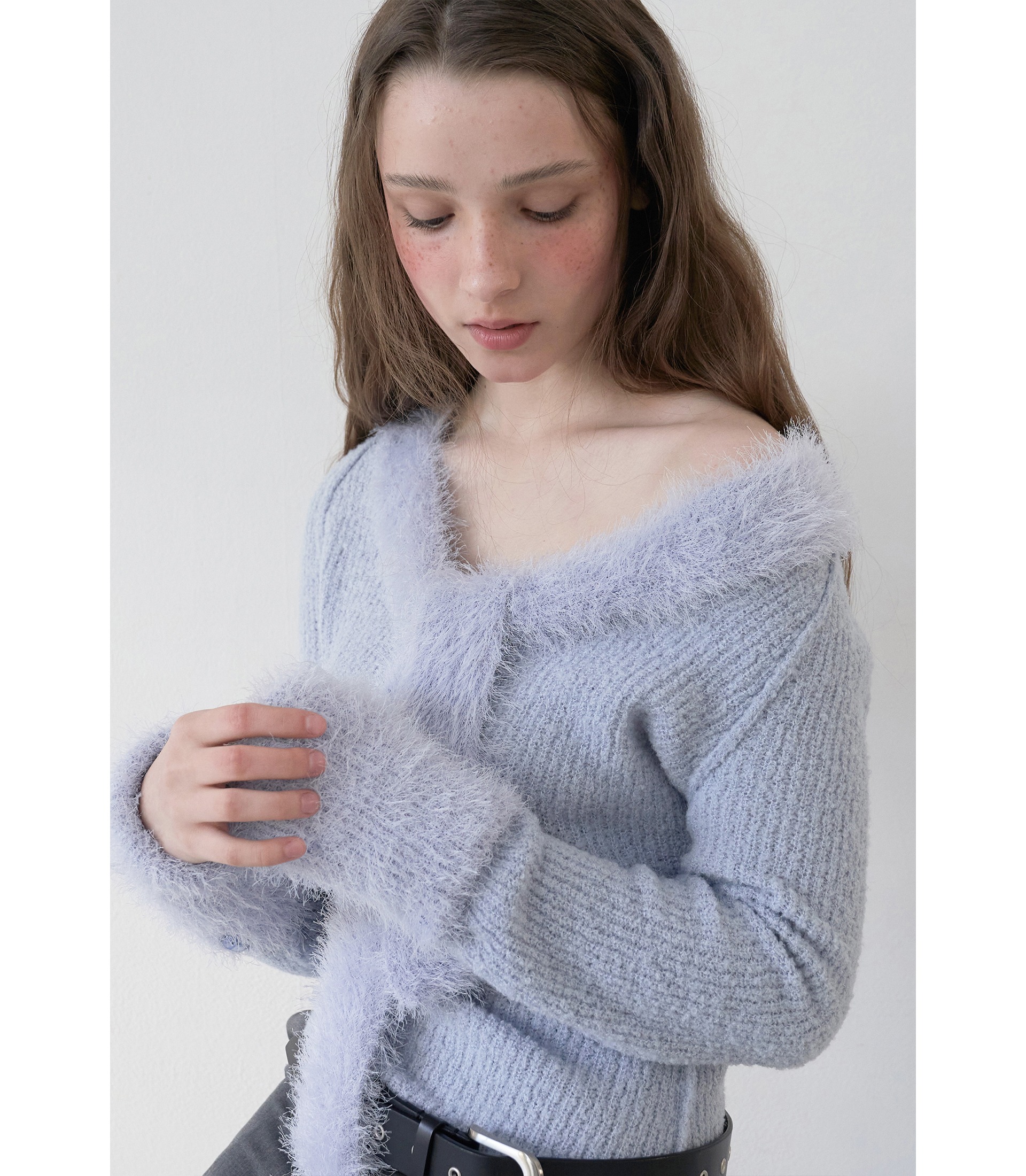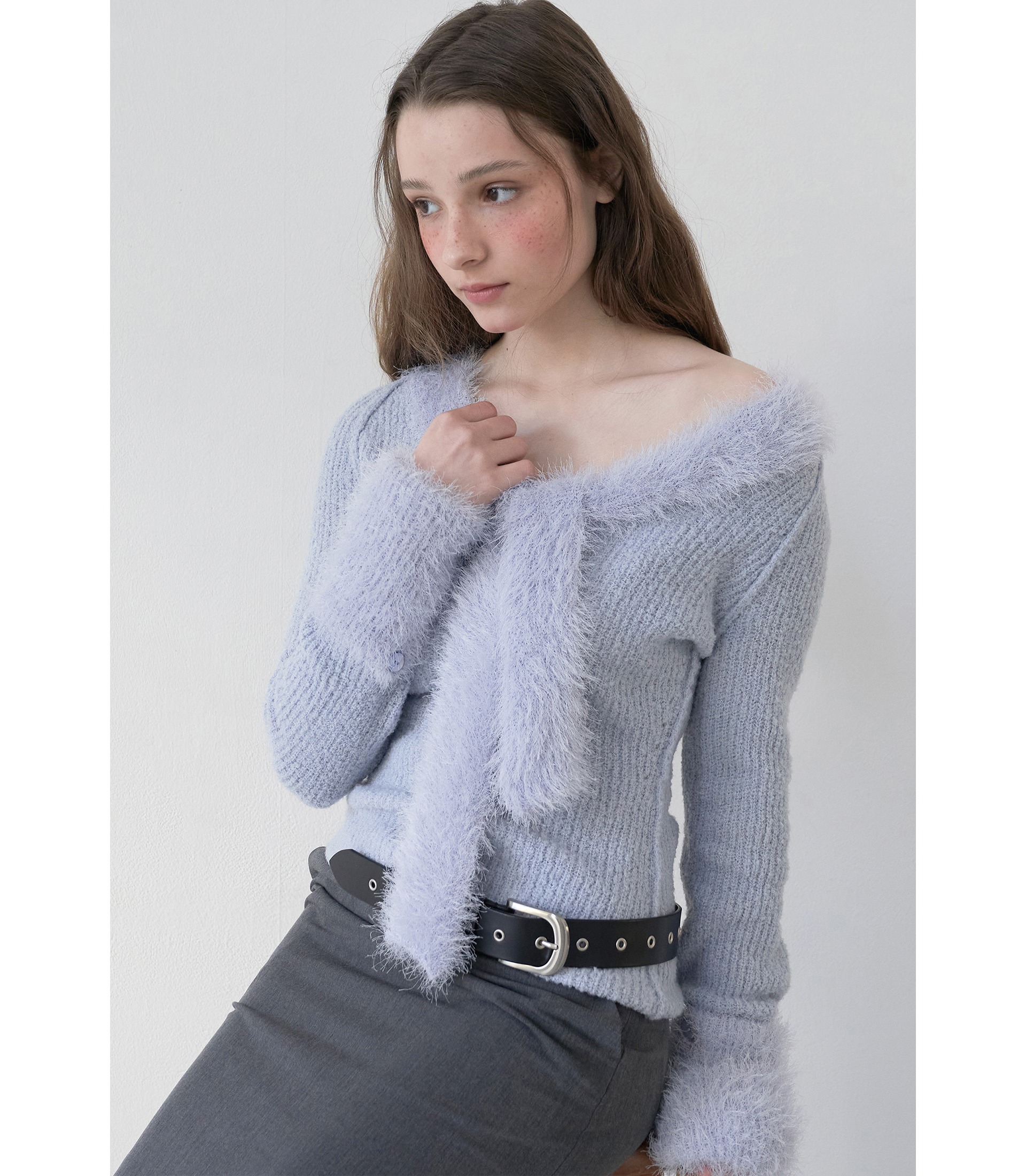 어깨를 살짝 내려 오프숄더로 스타일링하면