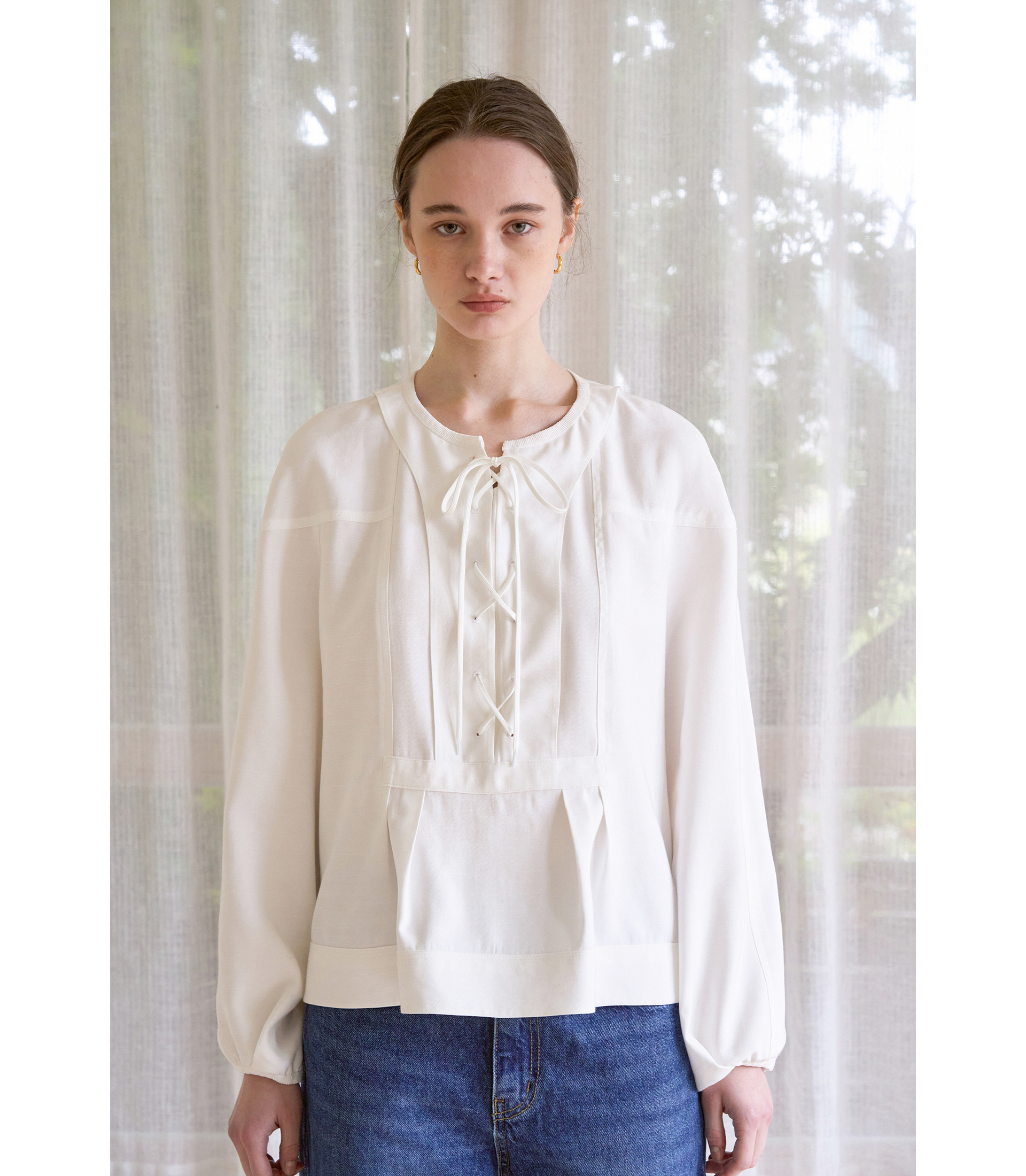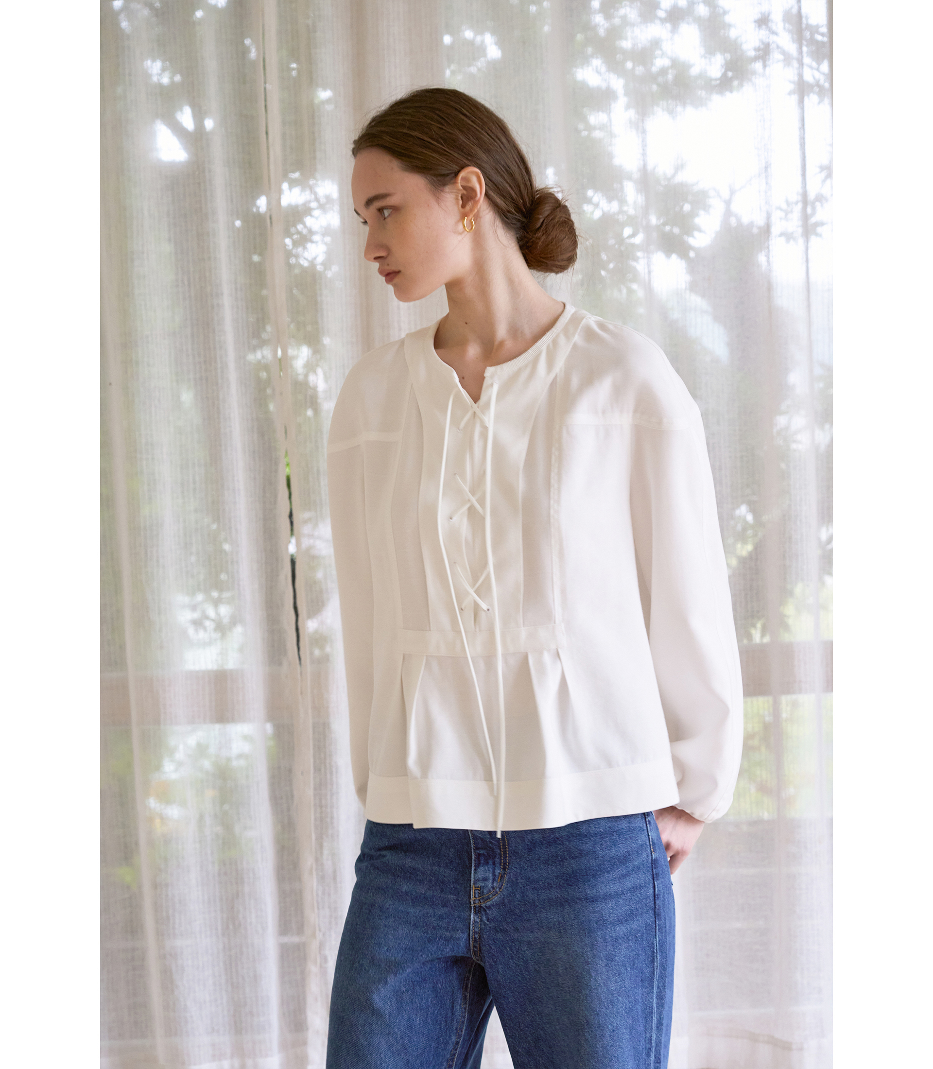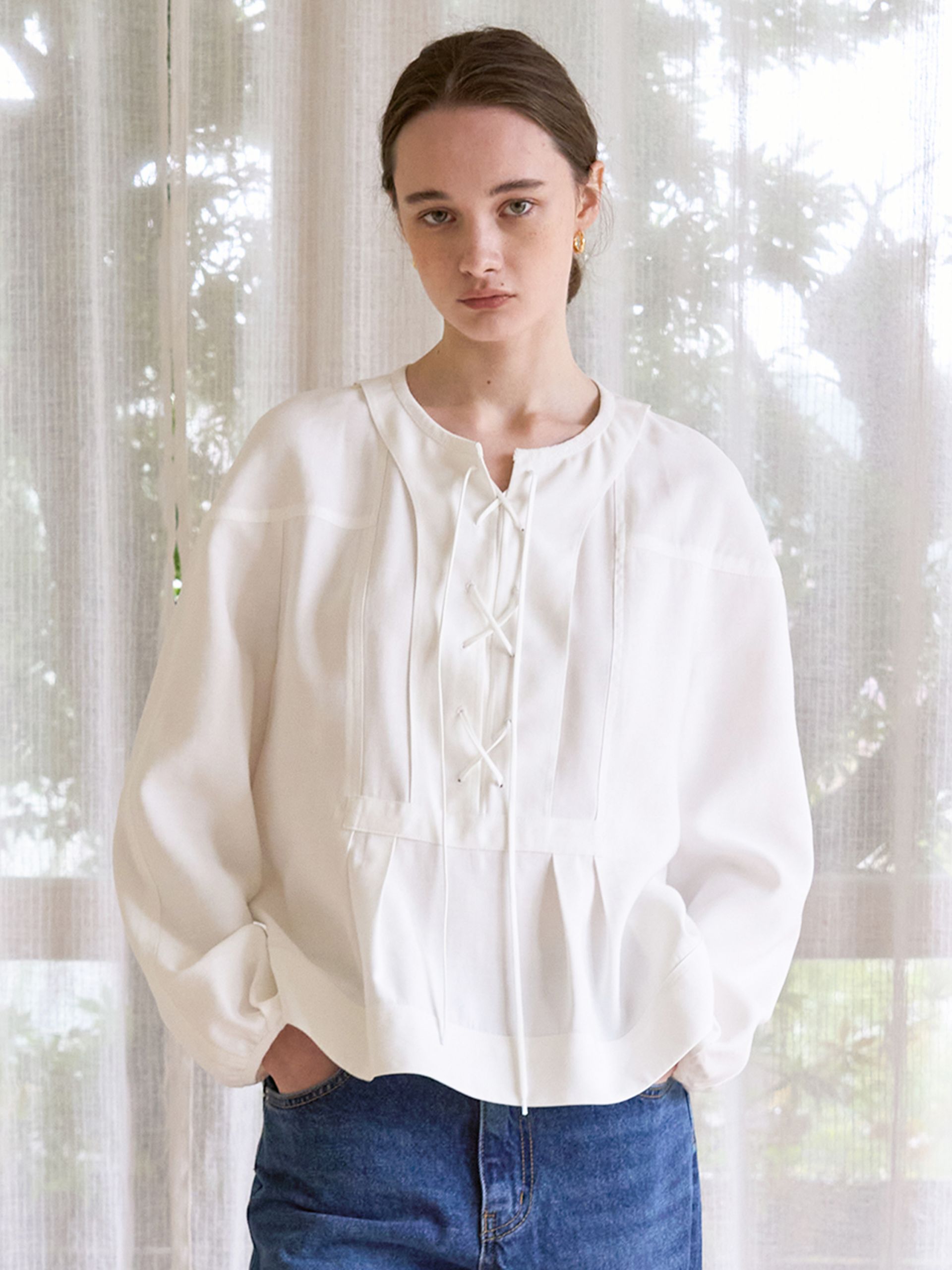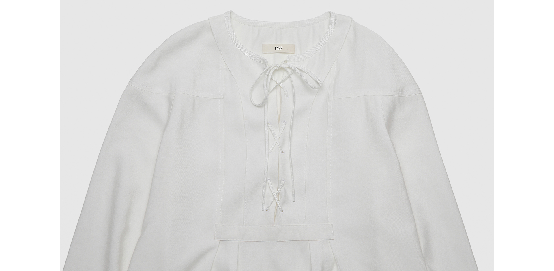 레이스업 여밈 방식으로 끈을 리본으로 묶거나