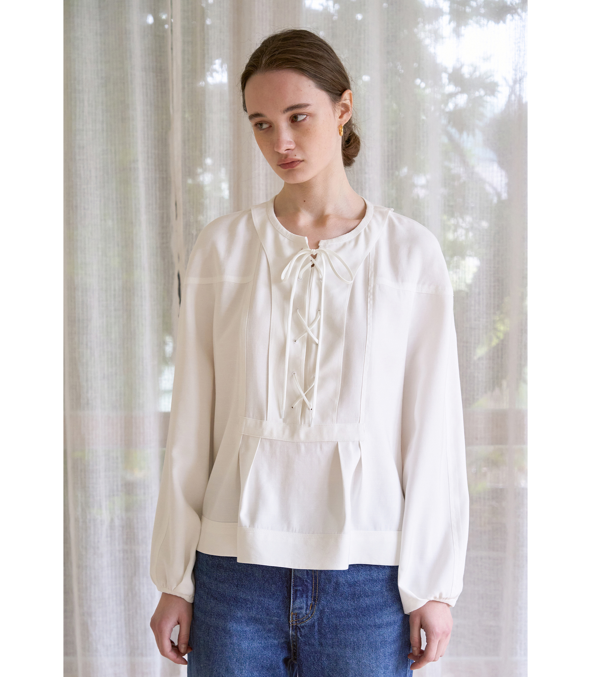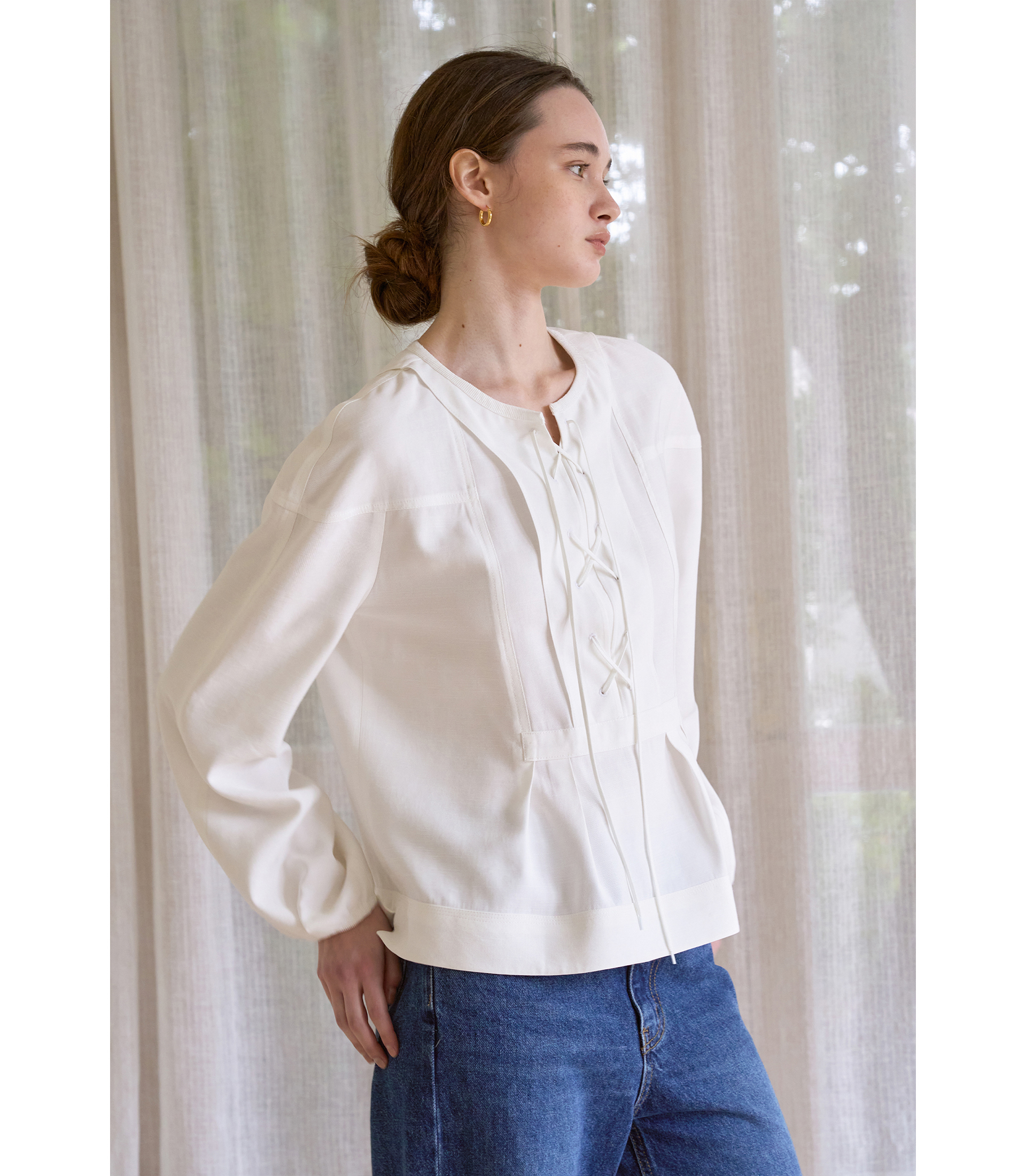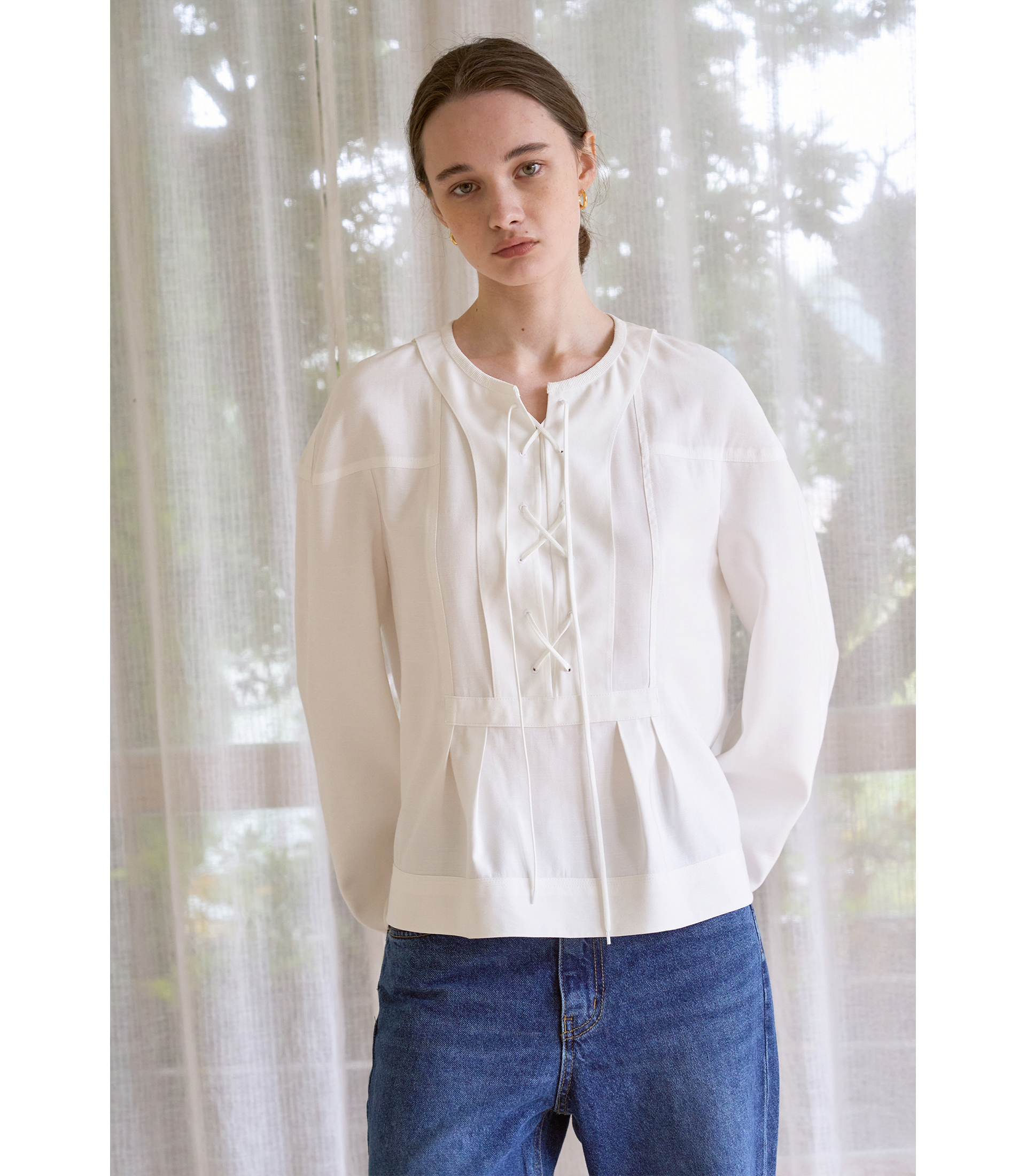 레이스업 여밈 방식으로 끈을 리본으로 묶거나
