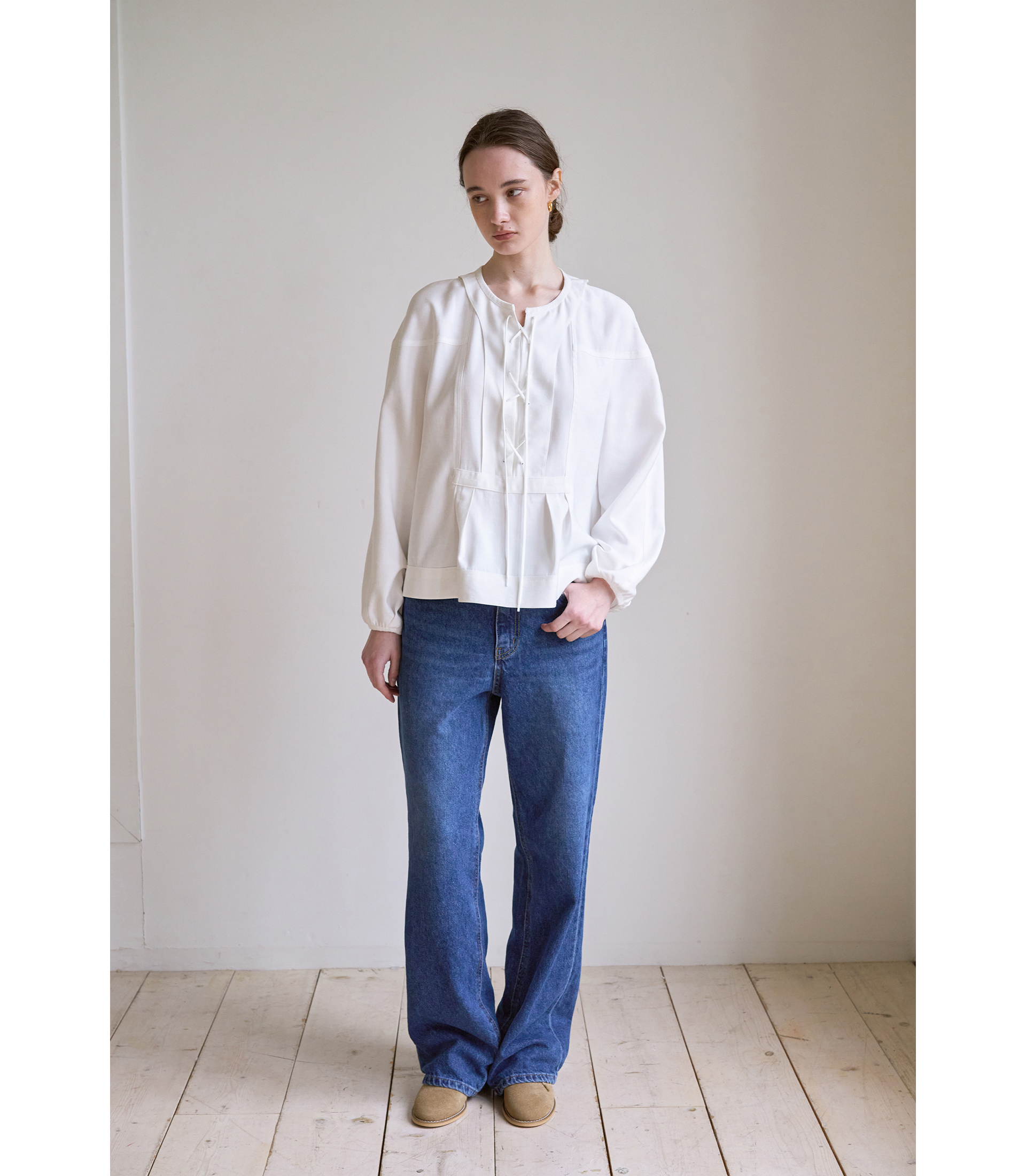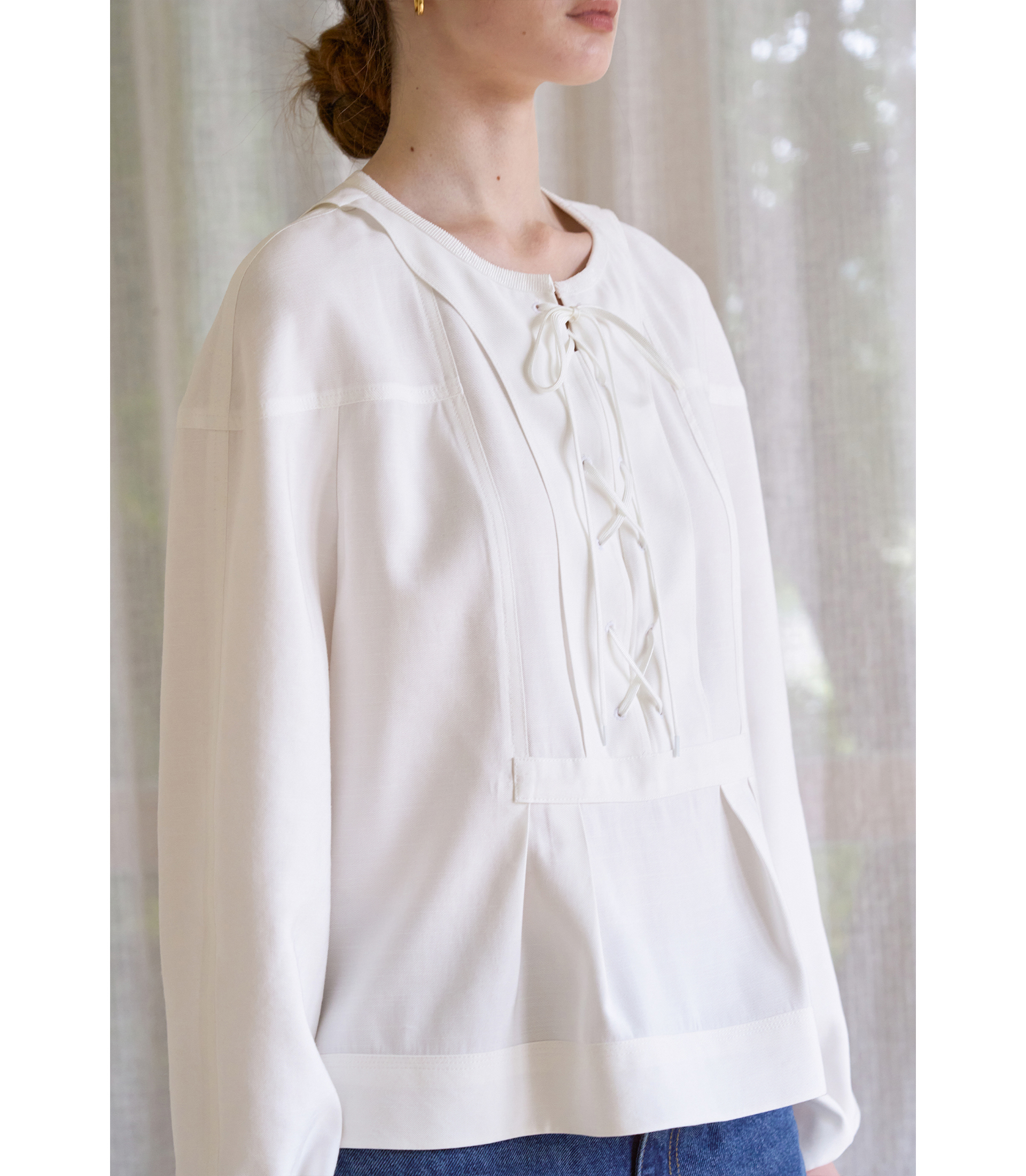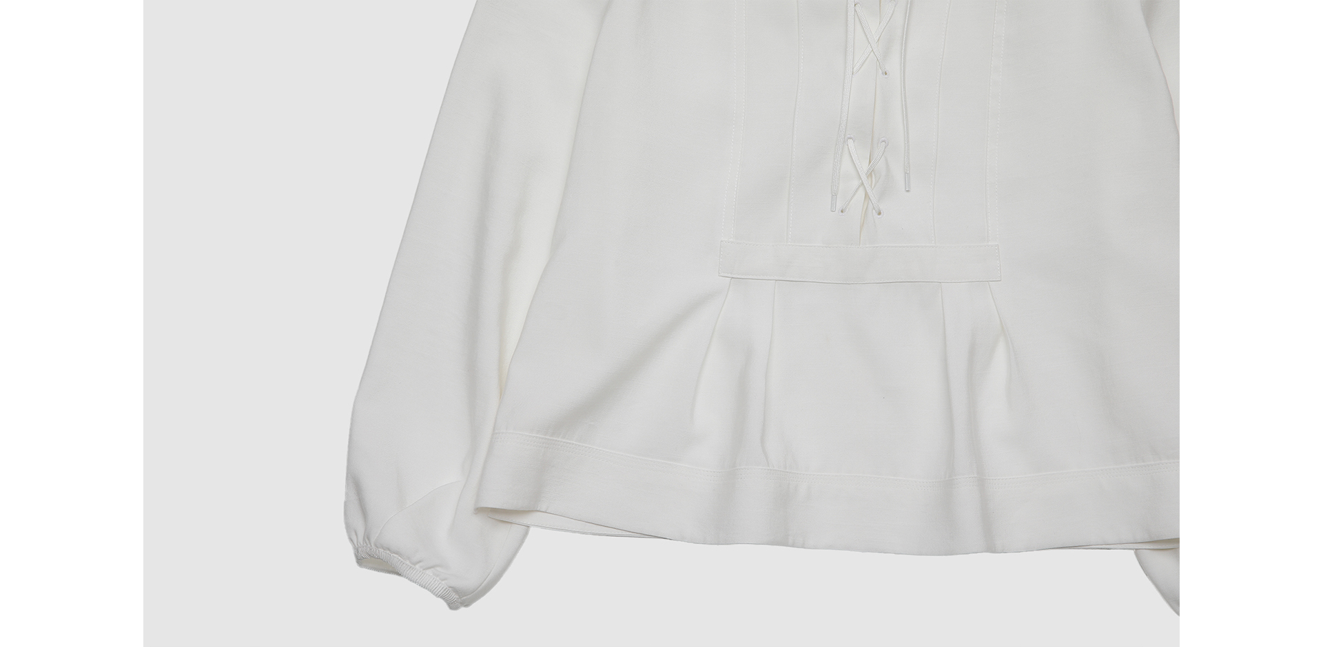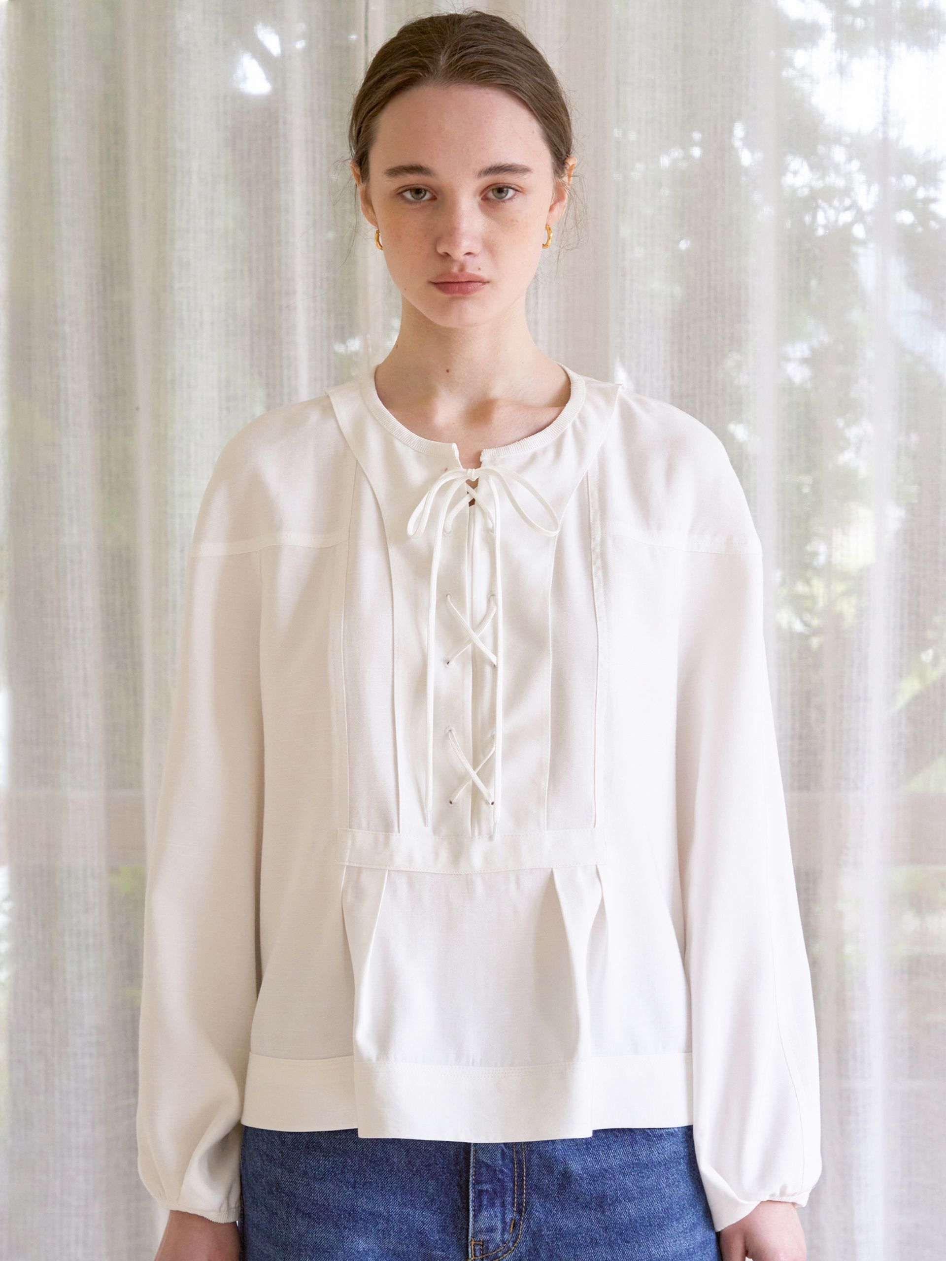 레이스업 여밈 방식으로 끈을 리본으로 묶거나