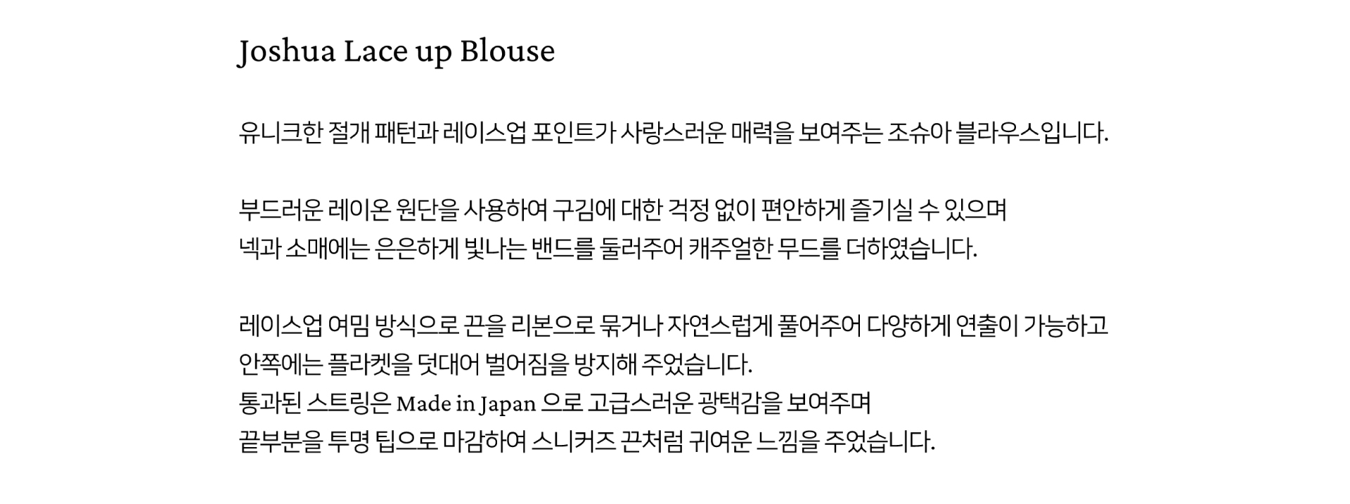 사랑스러운 매력을 보여주는 조슈아 블라우스 입니다.