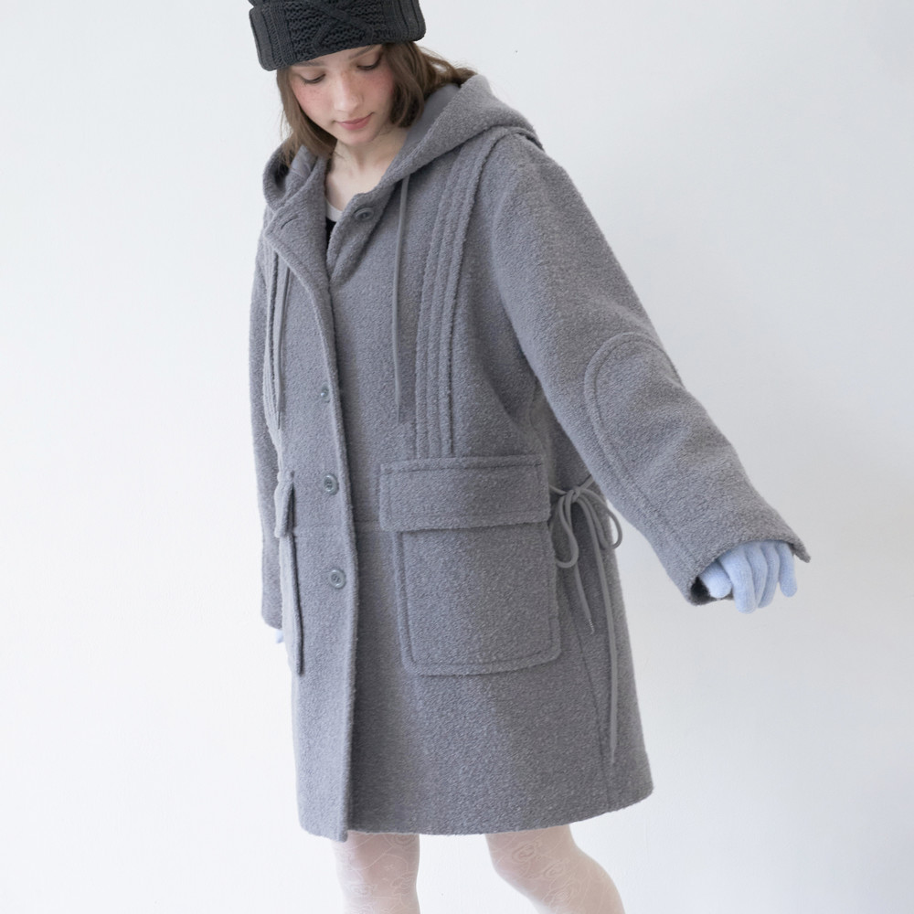 Elmo Hoodie Wool Coat (Grey)