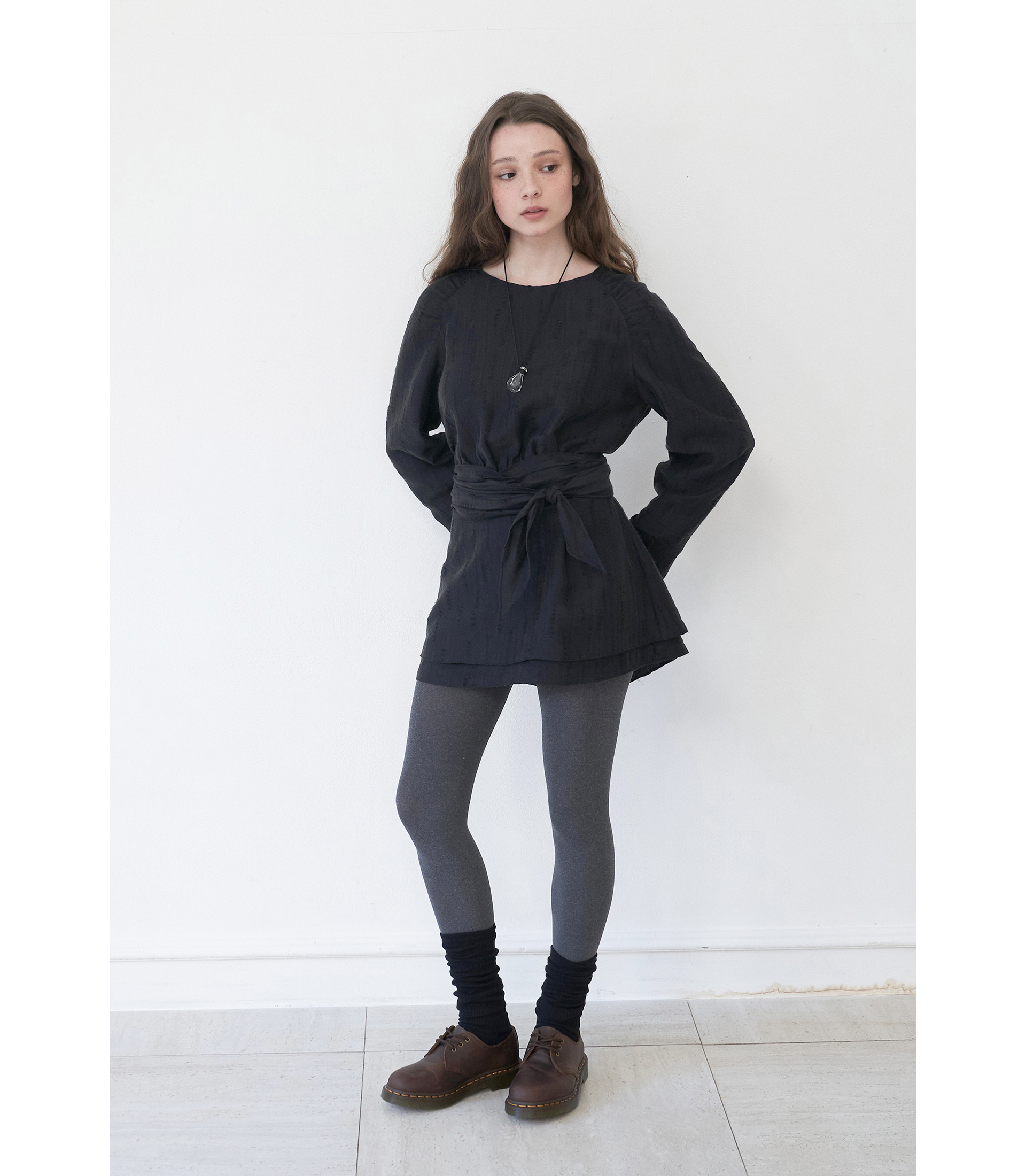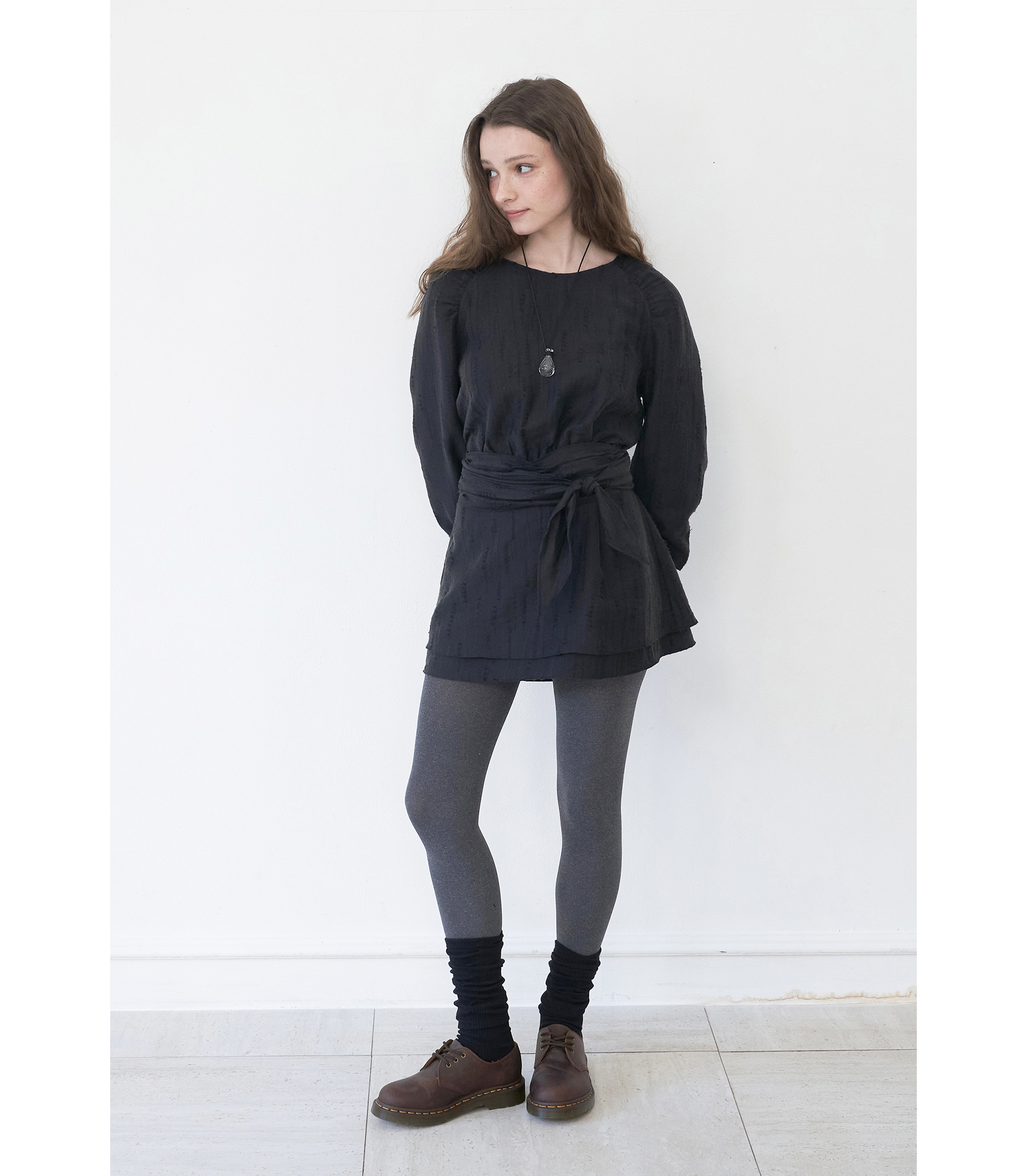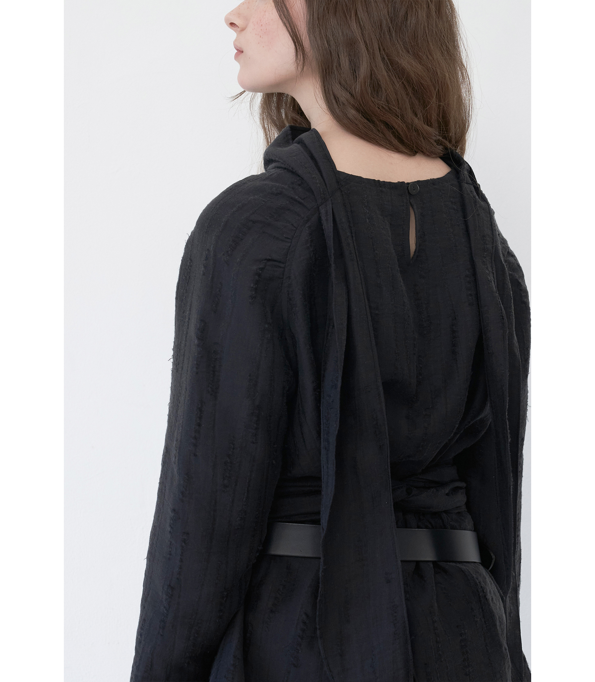 유려한 곡선의 실루엣, 원단의 자연스러운 텍스처가