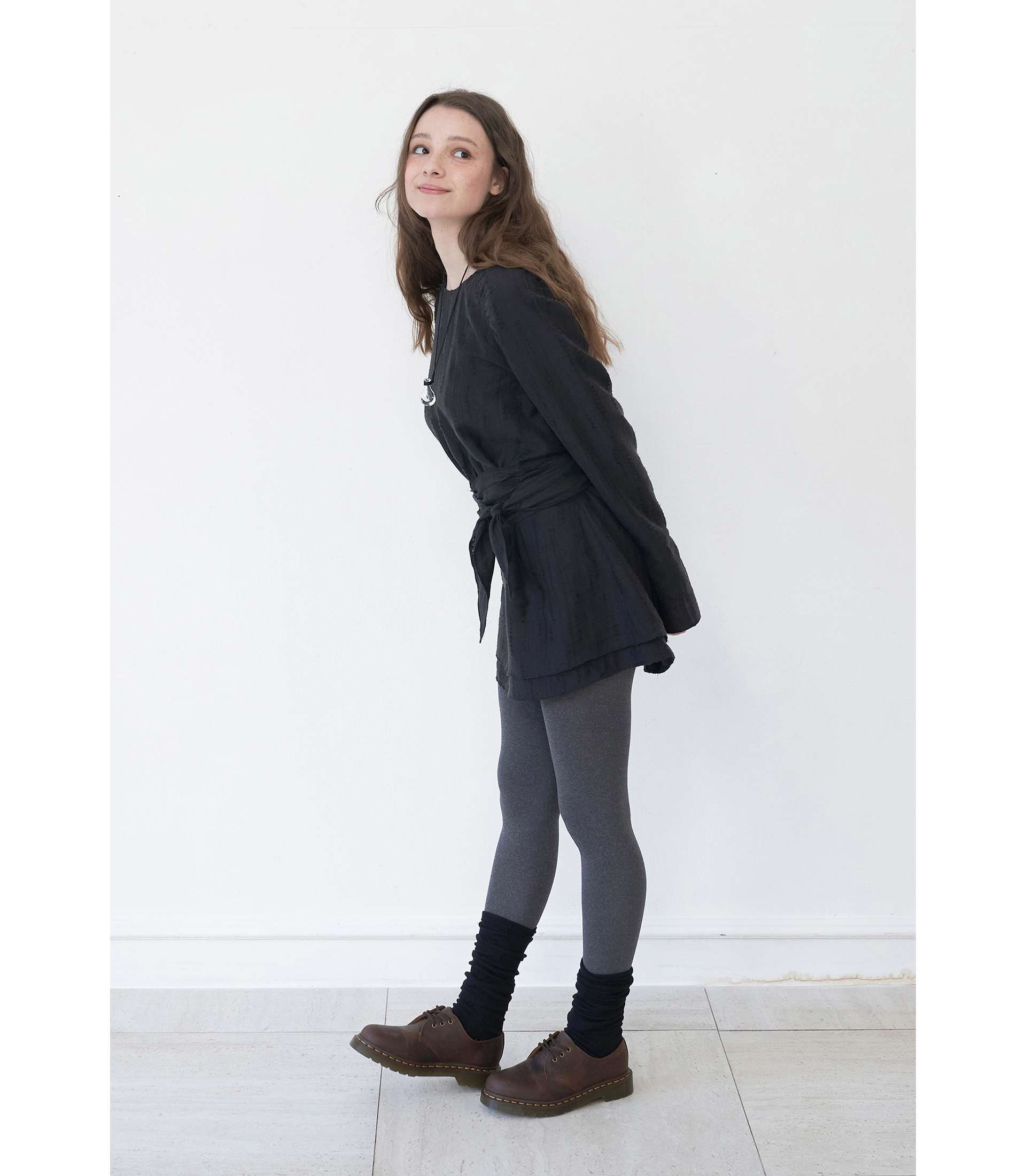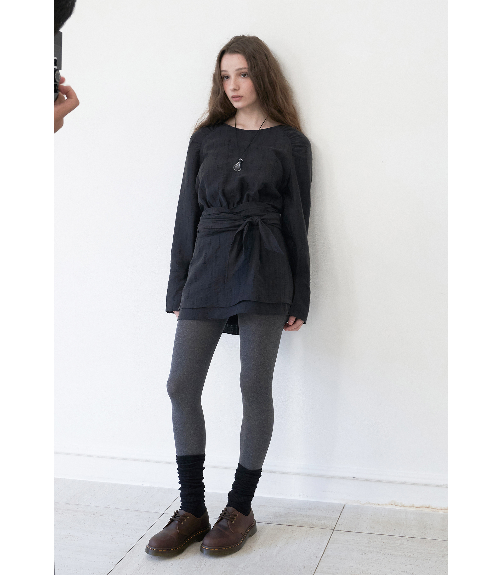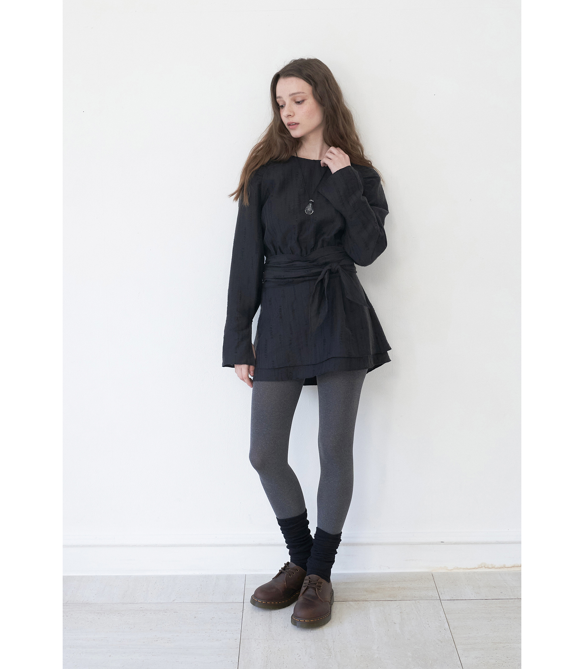유려한 곡선의 실루엣, 원단의 자연스러운 텍스처가