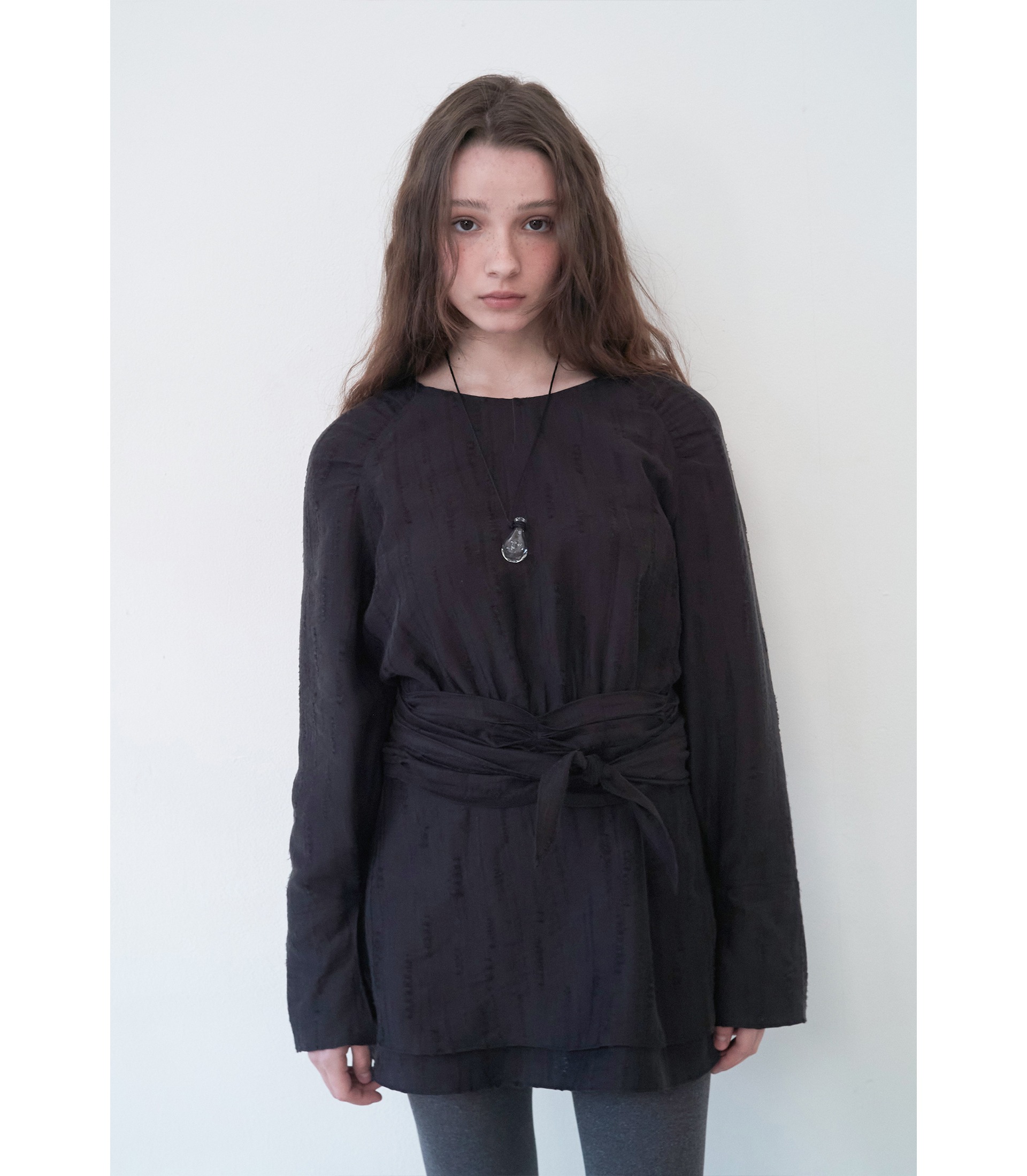 [2nd-order] Leaf Scratch Tie Dress (Black)